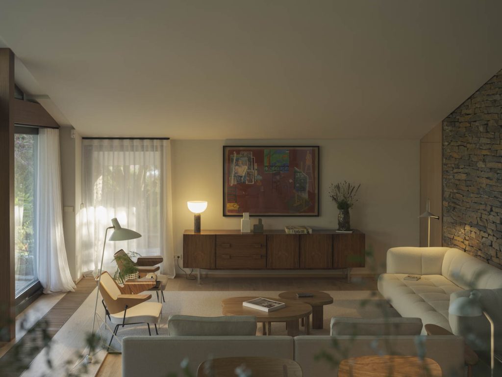 Vivienda unifamiliar en Oleiros (A Coruña), rodeada de vegetación y diseñada para integrarse en un entorno natural privilegiado. Cuenta con piscina y un jardín de gran amplitud, que refuerzan la conexión entre arquitectura, paisaje y calidad de vida.